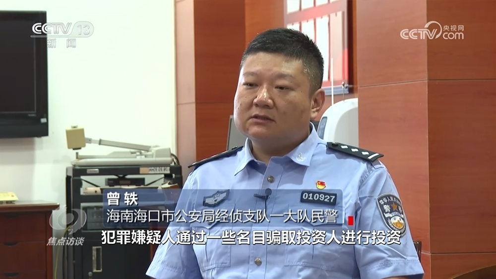 海南??谑泄簿纸?jīng)偵支隊(duì)一大隊(duì)民警曾軼:“舉報(bào)到我們海口市的金融局,由金融局牽頭??谑卸鄠€(gè)相關(guān)職能單位,包括稅務(wù)、工商、公安相關(guān)單位一起成立了聯(lián)合調(diào)查組。這個(gè)公司如果是一個(gè)正常的新能源充電樁公司,收益會(huì)源源不斷進(jìn)入公司的賬戶,我們?cè)谡{(diào)取相關(guān)銀行流水的過程中發(fā)現(xiàn)沒有?!?/p>