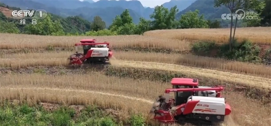 此外,還有更多適應(yīng)性能強(qiáng)的農(nóng)機(jī)裝備開進(jìn)了以往機(jī)收率不高的地塊。在甘肅省徽縣,15萬畝小麥已陸續(xù)成熟。徽縣地處秦巴山,耕地大多以坡地為主。為了讓小麥顆粒歸倉,當(dāng)?shù)亟M織體型小、能爬坡過坎的履帶式聯(lián)合收割機(jī)開展機(jī)收作業(yè),機(jī)收率達(dá)到95%以上,打通了農(nóng)機(jī)進(jìn)田“最后一公里”的難題。