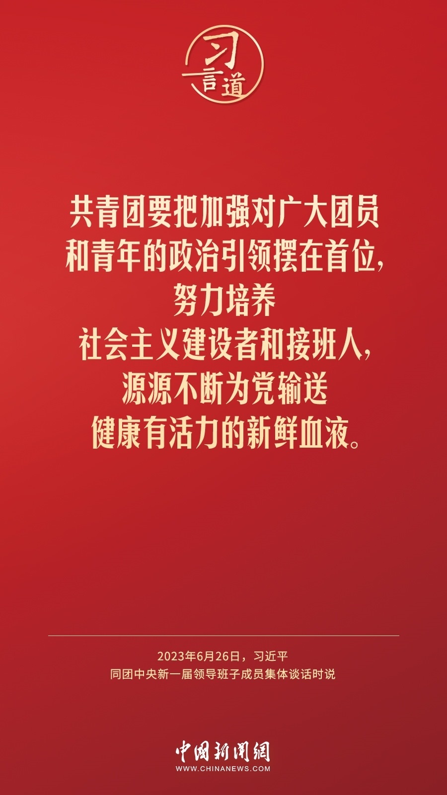 6月26日,中共中央總書(shū)記、國(guó)家主席、中央軍委主席習(xí)近平在中南海同團(tuán)中央新一屆領(lǐng)導(dǎo)班子成員集體談話并發(fā)表重要講話。習(xí)近平指出——