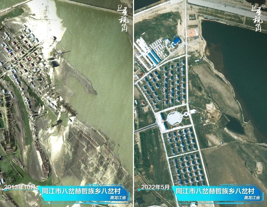 ↑2022年與2013年相比,黑龍江省同江市八岔赫哲族鄉(xiāng)八岔村村容村貌發(fā)生明顯改善。