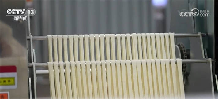 河南食品加工企業(yè)技術(shù)人員 劉錦濤:這款產(chǎn)品就是我們剛剛新開(kāi)發(fā)出來(lái)的“手延面”,它在生產(chǎn)中可以拉到兩米長(zhǎng)還不斷裂,最細(xì)的話(huà)可以做到0.5毫米,可以說(shuō)細(xì)如發(fā)絲。