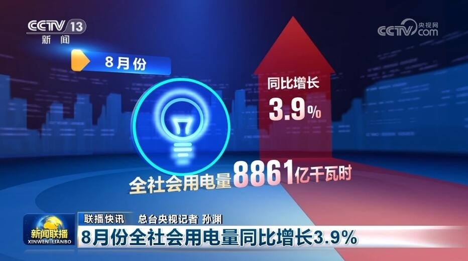 8月份全社會用電量同比增長3.9%