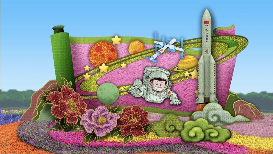 10,復(fù)興門東北角的“筑夢(mèng)未來(lái)”花壇頂高8.5米,以中國(guó)航天員、空間站為主景,寓意航天強(qiáng)國(guó)建設(shè)蓬勃發(fā)展,助力中國(guó)夢(mèng)早日實(shí)現(xiàn),全面推進(jìn)中華民族偉大復(fù)興,譜寫新時(shí)代中國(guó)特色社會(huì)主義更加絢麗的華章。