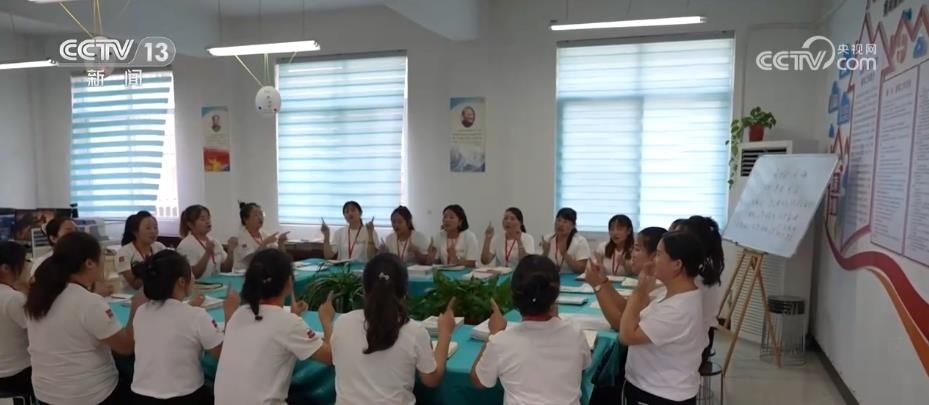 張彩麗就是經(jīng)過專業(yè)培訓(xùn)成了育嬰輔導(dǎo)員。她每天為11個孩子提供免費(fèi)養(yǎng)育指導(dǎo),除了和孩子互動交流,更重要的是對養(yǎng)護(hù)人進(jìn)行輔導(dǎo),提升他們科學(xué)養(yǎng)護(hù)孩子的知識。