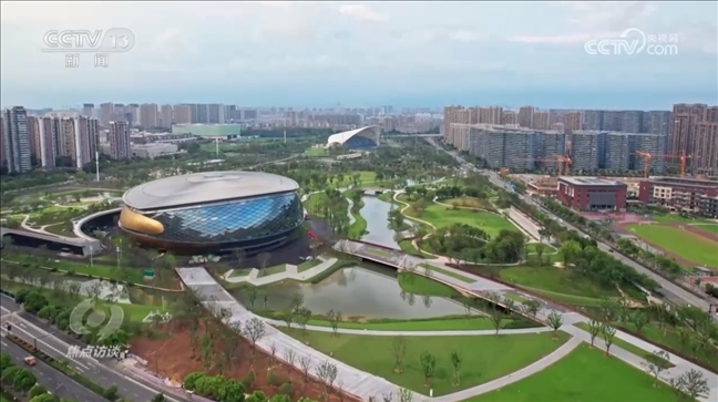 杭州亞運(yùn)會(huì)運(yùn)河體育公園指揮長(zhǎng)馮晶:“亞運(yùn)體育公園是按照綠色環(huán)保功能打造的,也是浙江省首座體育場(chǎng)館綠色三星級(jí)建筑。體育館的外立面采用陽(yáng)極氧化鋁材料,在雨天有自清潔的功能,不用人工清洗外立面。透水混凝土在雨天有非常好的滲水功能,和我們的人工湖相結(jié)合,在晴天可以反哺草地,實(shí)現(xiàn)海綿城市的標(biāo)準(zhǔn)規(guī)范?!?/p>