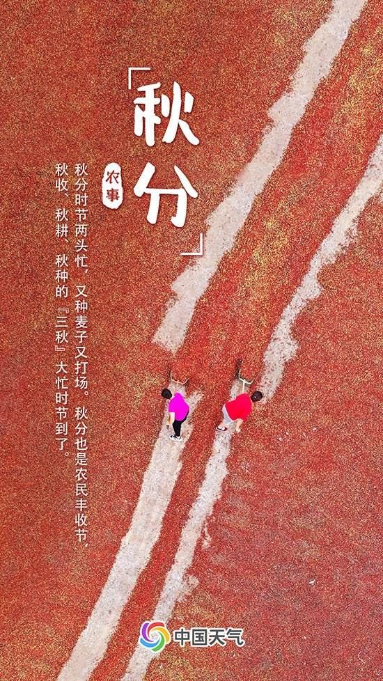 “秋分時節(jié)兩頭忙,又種麥子又打場。”秋分既意味著豐收的喜悅,也是耕種的標志。此時正是秋收、秋耕和秋種的“三秋”生產期,需重點防范初霜凍、華西秋雨、寒露風、大霧等天氣對農業(yè)生產方面可能造成的不利影響。