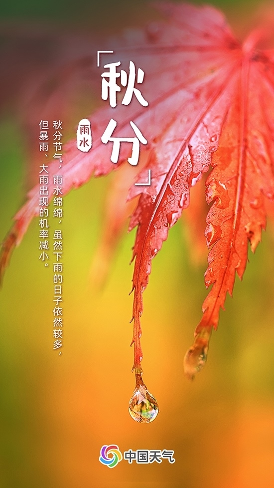 秋分時節(jié),南下的冷空氣與逐漸衰減的暖濕空氣相遇,易產生降水,如西南等地秋雨正當時。雖然下雨的日子依然較多,但暴雨、大雨出現(xiàn)的機率減小。