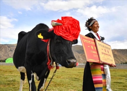 第六屆“聶雄杯”西藏高原·隆子黑白花優(yōu)質奶牛競賽在西藏山南市隆子縣進行決賽。按照早晚各一次現(xiàn)場擠奶稱總量計算、體形外貌和系譜檔案三條指標進行評比,一頭名叫“扎西”的奶牛奪冠。