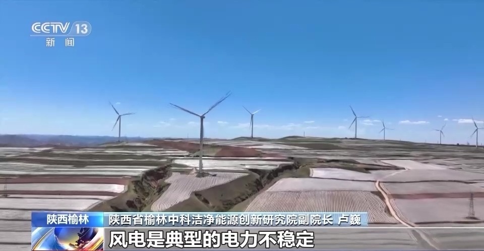 陜西省榆林中科潔凈能源創(chuàng)新研究院副院長 盧巍:風(fēng)電是典型的電力不穩(wěn)定,風(fēng)大多一點(diǎn),風(fēng)小少一點(diǎn),然后再就是這個光伏,今天有太陽,可能發(fā)得就多一點(diǎn),今天陰天,可能就發(fā)得少一點(diǎn),甚至不發(fā)電。