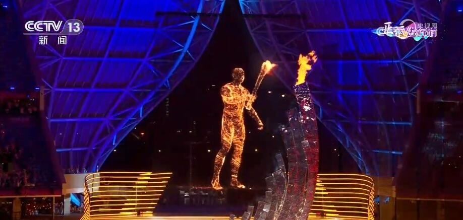 同時,以數(shù)字虛擬現(xiàn)實技術、裸眼3D視覺特效、全景交互為代表的新技術手段輪番上陣,令觀眾仿佛穿越千年時光,沉浸式感受宋韻風雅??偱_提供大量錢塘江大潮實拍素材,融入地屏和網(wǎng)幕影像,生動呈現(xiàn)大潮涌動、勇立潮頭的澎湃效果,展現(xiàn)出運動健兒奮勇拼搏的體育精神。亞運歷史上首次實現(xiàn)的“數(shù)實結合”的點火儀式,極富沖擊力的畫面為觀眾營造出充滿想象與寫意的視覺奇觀。