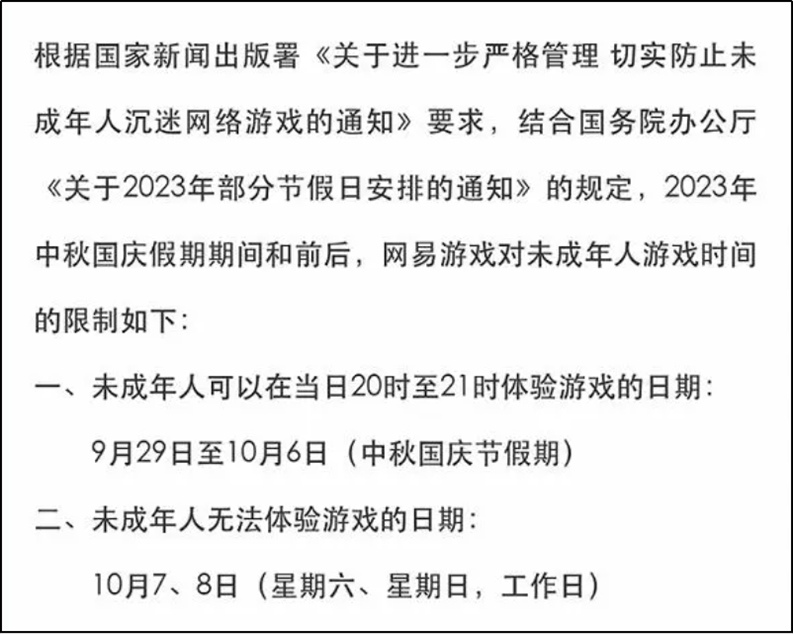·多個(gè)游戲平臺(tái)發(fā)布中秋國慶假期未成年人游戲限時(shí)通知。