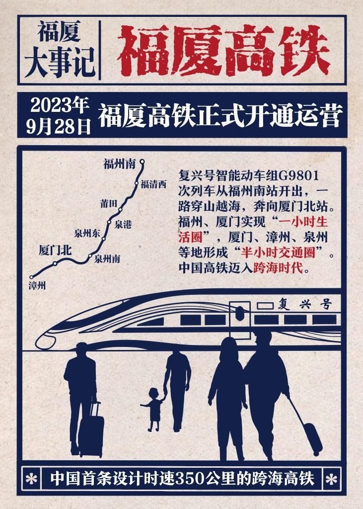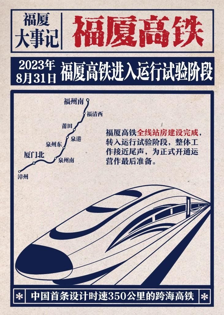 我國(guó)首條設(shè)計(jì)時(shí)速350公里的跨海高鐵——福廈高鐵正式開通運(yùn)營(yíng)