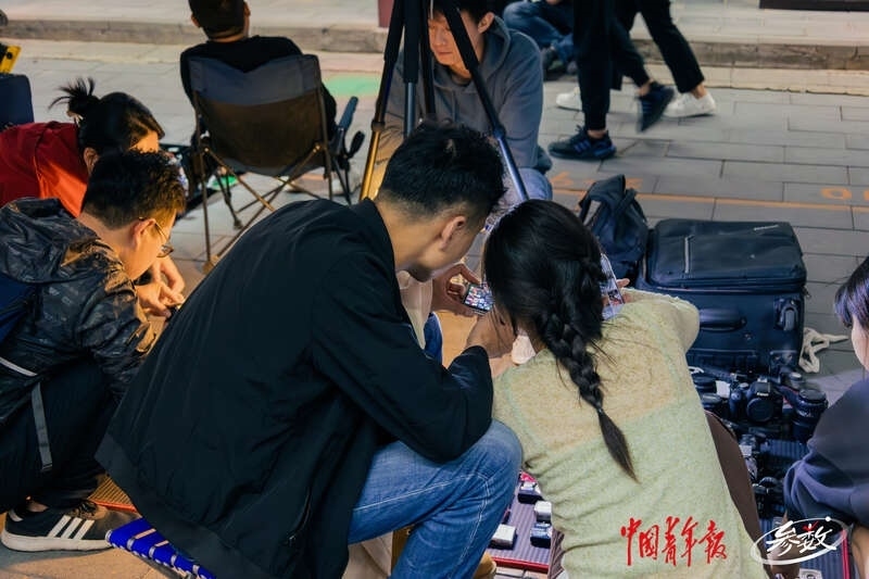 在西安大唐不夜城步行街內,來往游客正在觀看互動表演。中青在線記者 白楊/攝