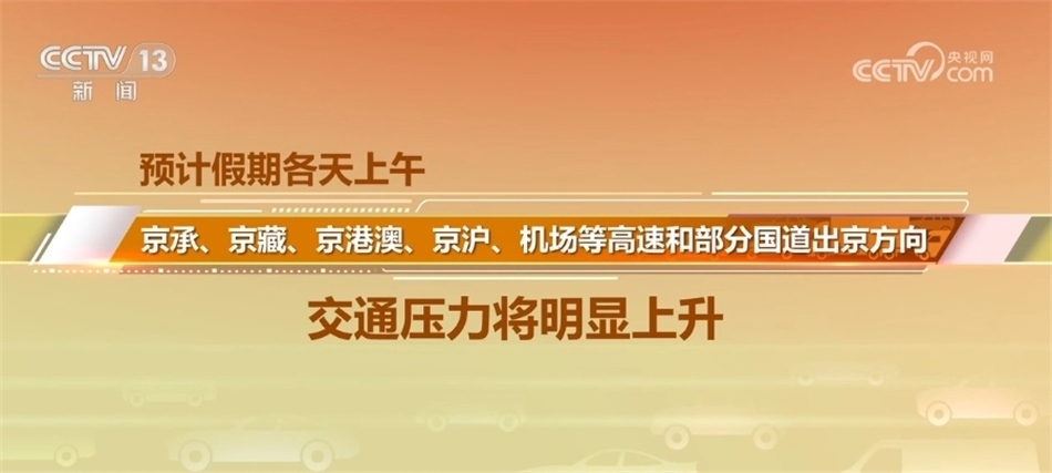 北京市交通部門(mén)表示,“雙節(jié)”假日期間,高速公路小客車免費(fèi)通行、尾號(hào)不限行等措施帶動(dòng)群眾出行需求集中釋放,預(yù)計(jì)中超、中網(wǎng)、演出等大型活動(dòng)舉辦場(chǎng)地周邊道路短時(shí)車流集中,連接城區(qū)和郊區(qū)的各條高速公路將出現(xiàn)上午出京、下午進(jìn)京的車流高峰,預(yù)計(jì)假期各天上午,京承、京藏、京港澳、京滬、機(jī)場(chǎng)等高速和部分國(guó)道出京方向的交通壓力將明顯上升。