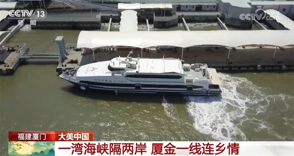 現(xiàn)在我們看到的是福建廈門(mén)的五通客運(yùn)碼頭。從這里出發(fā)往返金門(mén)的廈金航線,因?yàn)楹桨喽?、航程短,成為兩岸人員往來(lái)的主要通道。越來(lái)越多的臺(tái)胞在廈門(mén)就業(yè)、創(chuàng)業(yè),通過(guò)廈金航線實(shí)現(xiàn)“廈金一日生活圈”。中秋、國(guó)慶假期,這里也迎來(lái)客運(yùn)高峰,許多人選擇廈金航線回家和親人團(tuán)圓。