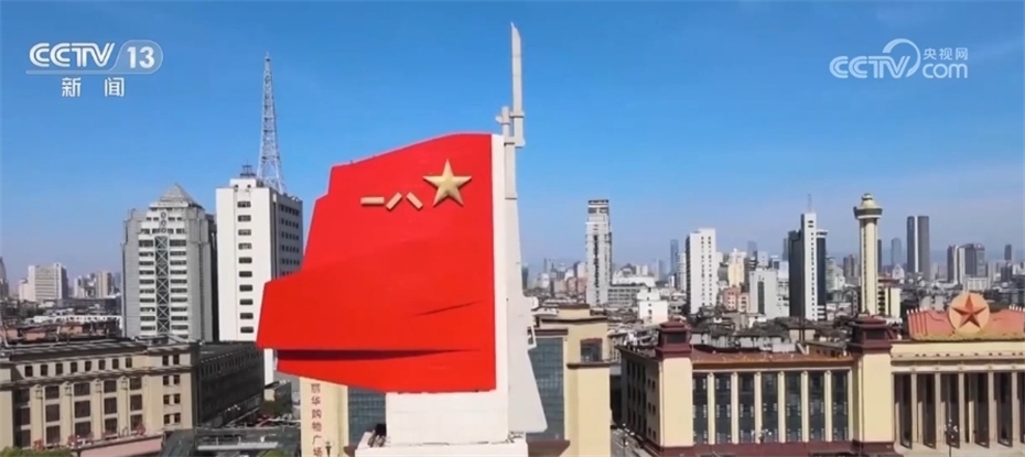 這里是江西省南昌市中心的八一廣場(chǎng),八一南昌起義紀(jì)念塔巍然矗立,塔頂有一面用棗紅色磨光花崗石做成的八一軍旗,形象地表現(xiàn)南昌起義開(kāi)始中國(guó)共產(chǎn)黨獨(dú)立領(lǐng)導(dǎo)武裝斗爭(zhēng)、人民軍隊(duì)從此光榮誕生這一偉大主題?!澳喜穷^的槍聲”如“劃破夜空的一道閃電”,從此軍旗獵獵向前進(jìn)。