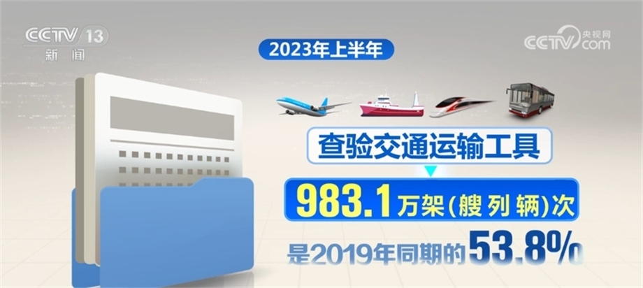 據(jù)國家移民管理局統(tǒng)計,2023年上半年,全國移民管理機(jī)構(gòu)共查驗出入境人員1.68億人次,是2019年同期的48.8%,其中內(nèi)地居民8027.6萬人次,港澳臺居民7490.3萬人次,外國人843.8萬人次(不含邊民);查驗交通運輸工具983.1萬架(艘、列、輛)次,是2019年同期的53.8%,其中,飛機(jī)20.4萬架次、船舶19.1萬艘次、火車4.4萬列次、汽車939.2萬輛次。