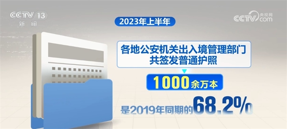 今年上半年,各地公安機(jī)關(guān)出入境管理部門共簽發(fā)普通護(hù)照1000余萬本,是2019年同期的68.2%;簽發(fā)往來港澳臺出入境證件簽注4279.8萬本(枚),是2019年同期的96.5%;為在華外國人辦理停留居留證件37.9萬人次,是2019年同期的86.7%。