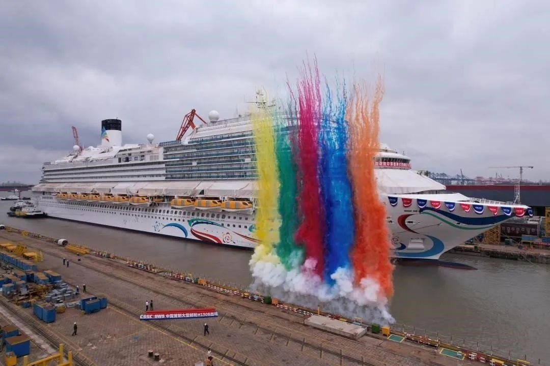 △2023年6月6日,首艘國(guó)產(chǎn)大型郵輪愛(ài)達(dá) 魔都號(hào)在上海外高橋造船廠(chǎng)完成塢內(nèi)系列試驗(yàn)后正式出塢。