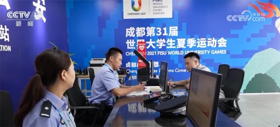 成都市公安局出入境管理局外國人管理大隊三級警長 王珂:我們在大運村設立這個警務站,主要是為了給各國代表團、運動員和村里的工作人員提供安全服務,同時也能提供護照報失登記、簽證咨詢等服務,便于代表團成員后續(xù)辦理相關證件。