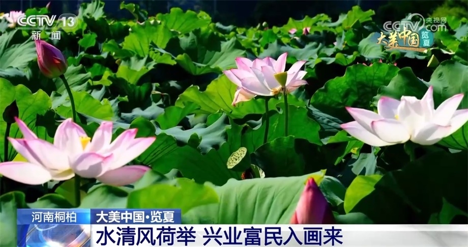盛夏時節(jié),河南桐柏縣的兩萬余畝荷田迎來了一年中最美的季節(jié)。從空中俯瞰,藍天白云之下,青翠的稻田與荷田相映成趣,沿著彎曲的河流交錯分布,青山依依、碧水潺潺、煙波浩渺、荷葉田田,美不勝收。一株株荷花裊娜地開著,以粉紅色為主,或鵝黃或潔白,一幅絕美的鄉(xiāng)村生態(tài)畫卷徐徐展開。據(jù)了解,目前桐柏荷花主要有藕蓮、花蓮等多個品種類群。當?shù)卣e極探索農(nóng)旅融合發(fā)展模式,在開展觀光旅游度假的同時,蓮產(chǎn)業(yè)已成為群眾增收的新途徑。