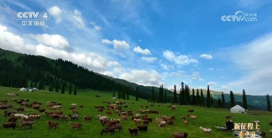 總臺(tái)央視記者 徐速:這里是新疆阿勒泰地區(qū)的禾木村,放牧是這里聚居的哈薩克族和蒙古族同胞們與生俱來的技能,也是他們生活和收入的主要來源之一。