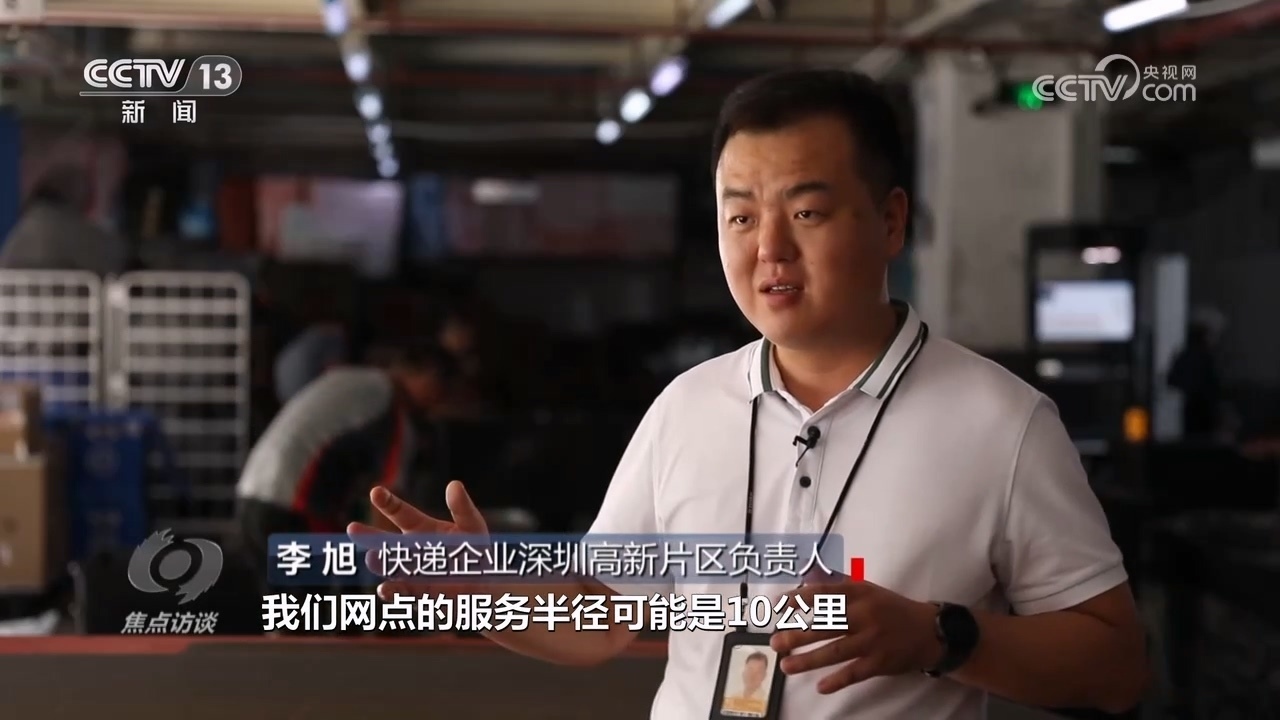 快遞企業(yè)速運深圳高新片區(qū)負責人李旭:“在電子科技化沒有實施的時候,網(wǎng)點服務半徑比較大,往前推十年,網(wǎng)點服務半徑可能是10公里,當年10公里服務半徑和目前2.5公里服務半徑不一樣,當年的時間段比如每天有1萬單,現(xiàn)在一天5萬單,從服務半徑來減少小哥的往返距離,提高收派效率?!?/p>