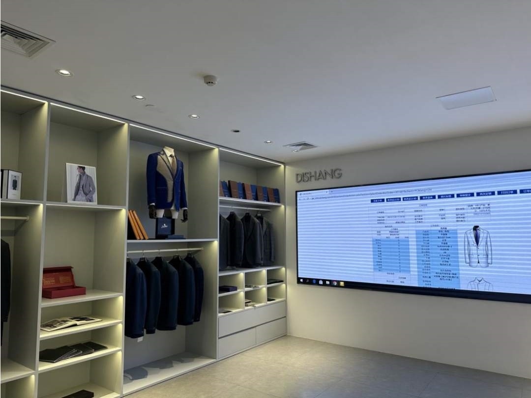走進(jìn)迪尚集團(tuán)辦公區(qū),多塊電子屏上,數(shù)據(jù)不斷更新,條目不斷變換,數(shù)字感十足。如果不是隨處可見(jiàn)的服裝展示,很難想到這是全國(guó)最大的服裝進(jìn)出口企業(yè)之一。