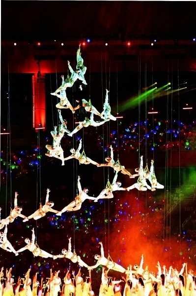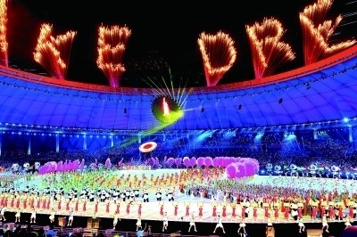 成都大運會開幕式現場的文藝演出。本報記者 郭俊鋒攝/光明圖片