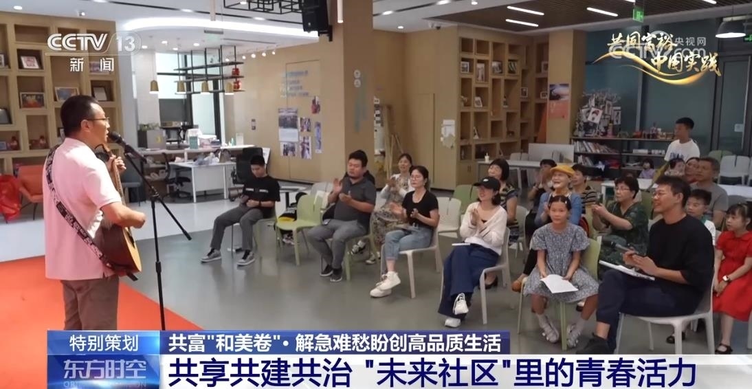 在楊柳郡社區(qū),除了兒童的成長(zhǎng)備受關(guān)注,年輕人的文化生活和社交需求也能得到滿(mǎn)足。社區(qū)創(chuàng)辦了21個(gè)興趣社群,邀請(qǐng)居民擔(dān)當(dāng)社群主理人,定期開(kāi)展活動(dòng)。高東新是音樂(lè)社群的主理人,他已經(jīng)組織了18場(chǎng)音樂(lè)會(huì),還在公共空間打造了別具一格的“社區(qū)音樂(lè)廳”。