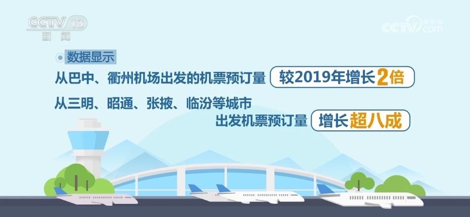 2023年暑運期間,三四線航空市場開始顯現出熱度。數據顯示,從巴中、衢州機場出發(fā)的機票預訂量較2019年增長兩倍。從三明、昭通、張掖、臨汾等城市出發(fā)機票預訂量增長超八成。
