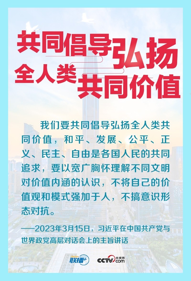 “大道之行,天下為公?!敝袊?guó)共產(chǎn)黨始終秉持全人類(lèi)共同價(jià)值,為世界和平發(fā)展作出貢獻(xiàn)。央視網(wǎng)《聯(lián)播+》特?cái)X取習(xí)主席關(guān)于全人類(lèi)共同價(jià)值的重要論述,邀您一同學(xué)習(xí)。