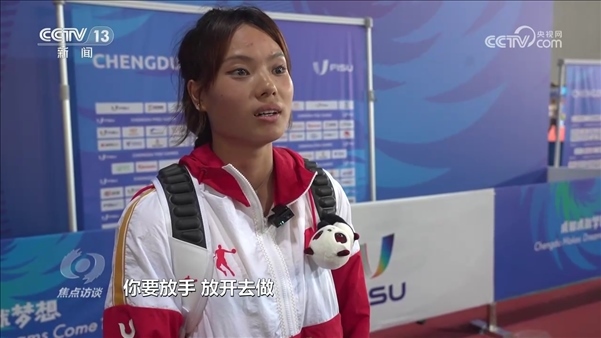 成都大運會中國代表團運動員江南:“那時候訓練壓力比較大,很累,身心疲憊,心理上、身體上的那種打擊,之后那一年就停訓了,退隊了?!?/p>