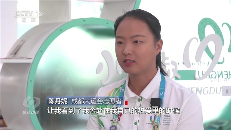 成都大運會志愿者陳丹妮:“我一定要回來,一定要把這件事情做完,而且把這件事情做好。我覺得成都大運會是我跟成都很深的情感上,包括精神上的一個聯(lián)結,它已經(jīng)成為我青春記憶中非常重要的一個環(huán)節(jié),所以我完全沒有想過我有一天要放棄它。”