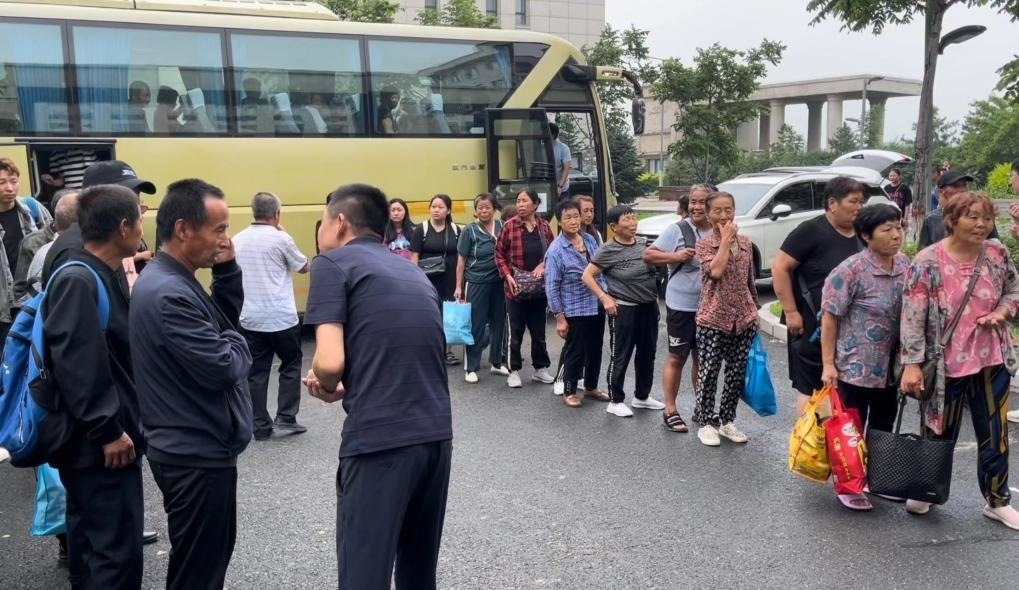 8月4日,轉(zhuǎn)移安置群眾乘大巴車來到五常市雅臣中學(xué)安置點。新華社記者 劉昊東 攝