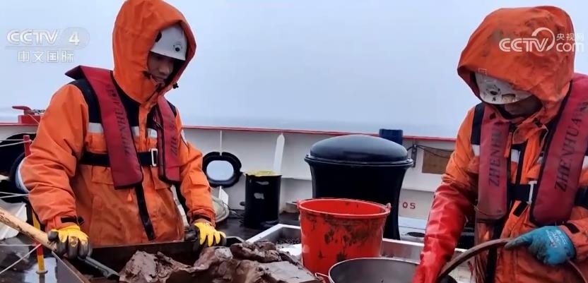 中國第13次北冰洋科學考察隊隊員 劉坤:大概兩個小時吧。冷,海水比較冷,上來之后在兩(攝氏)度左右,泥的溫度也差不多在兩(攝氏)度。