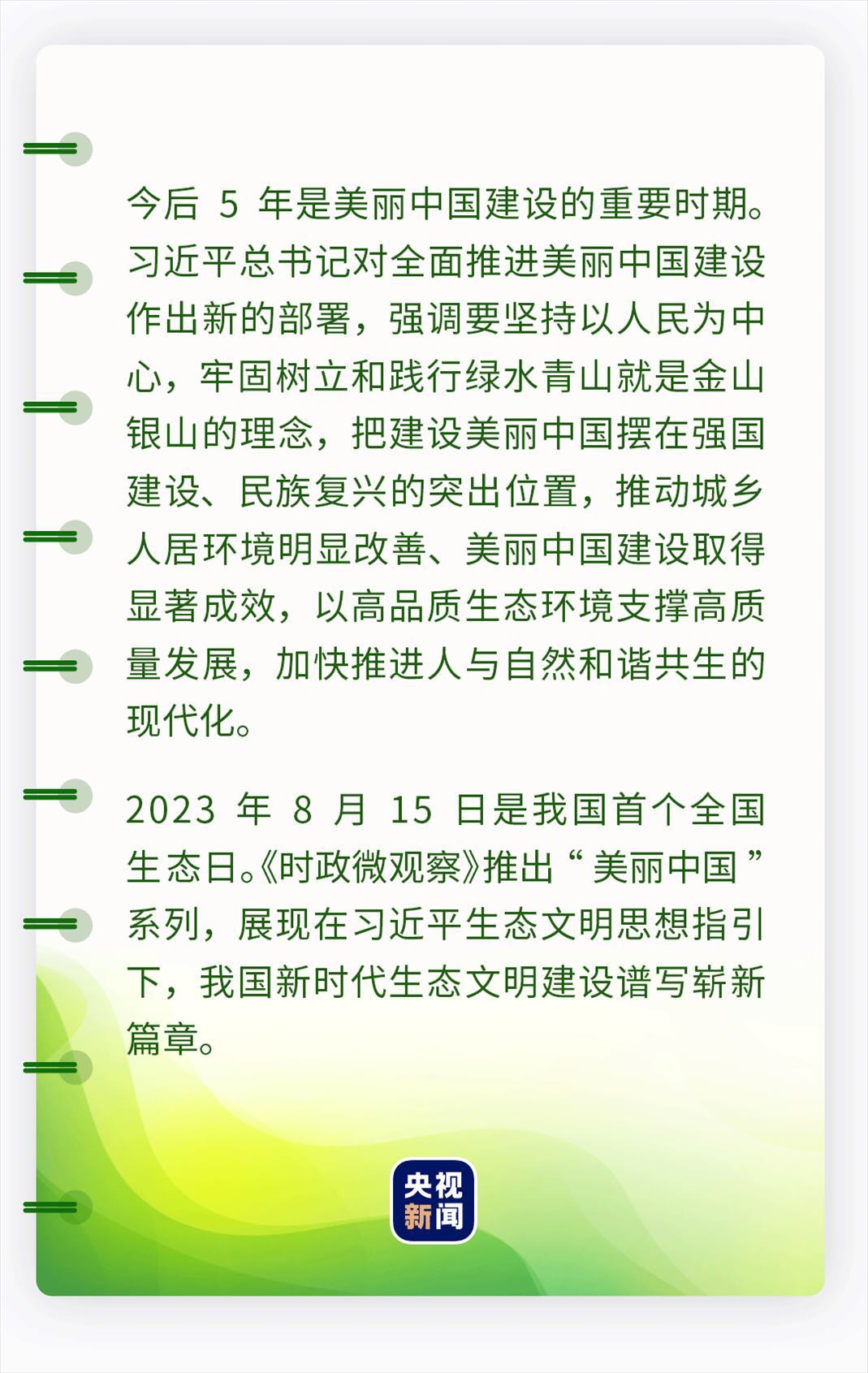 在習(xí)近平生態(tài)文明思想指引下,我們守牢美麗中國建設(shè)安全底線,健全美麗中國建設(shè)保障體系,在神州大地上全面推進美麗中國建設(shè),不斷繪出人與自然和諧共生的美好畫卷。