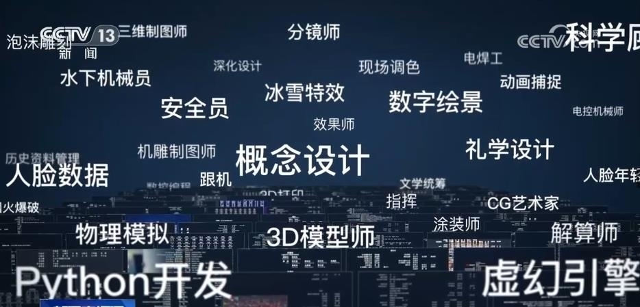 從30多萬字的文本中,AI算法識別出了300多個電影產(chǎn)業(yè)工種,一條隱藏在幕后的國產(chǎn)電影產(chǎn)業(yè)鏈在眼前展開。這是一個電影產(chǎn)業(yè)鏈越分越細、工種越增越多的過程。20多個新的工種在這10年間誕生,動作捕捉、虛擬拍攝、數(shù)控編程、3D打印等,其中,七成以上的新增工種跟數(shù)字化技術(shù)的進步有關(guān)。