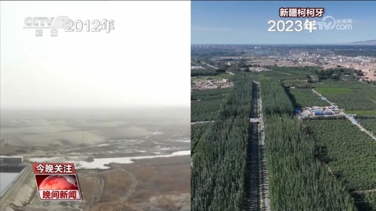新疆阿克蘇地區(qū)的柯柯牙曾經(jīng)是南疆風沙策源地之一。30年來,面對柯柯牙缺水和土壤鹽堿含量高的情況,當?shù)叵到y(tǒng)推進山水林田湖草沙一體化保護和系統(tǒng)治理,柯柯牙綠化工程造林共計120.26萬畝,累計栽植樹木1400萬株,荒漠變?yōu)榱趾#罱K在貧瘠的戈壁荒漠中,造就了一道“綠色長城”。
