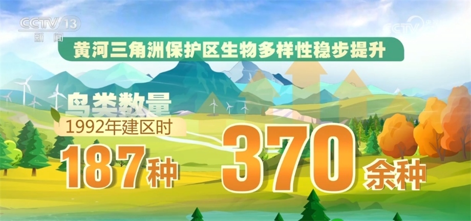 黃河干流在2022年首次全線達(dá)到Ⅱ類水質(zhì),隨著黃河流域生態(tài)保護(hù)和高質(zhì)量發(fā)展的不斷推進(jìn),黃河流域植被覆蓋度提升,“綠線”向西移動(dòng)約300公里。目前,黃河三角洲保護(hù)區(qū)生物多樣性穩(wěn)步提升,鳥類數(shù)量由1992年建區(qū)時(shí)的187種增加到了現(xiàn)在的370余種。