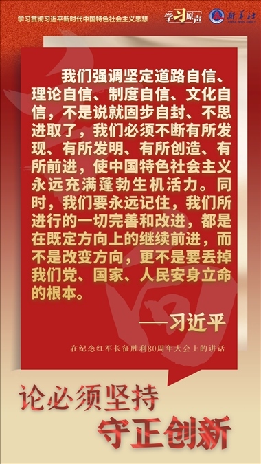我們從事的是前無(wú)古人的偉大事業(yè),守正才能不迷失方向、不犯顛覆性錯(cuò)誤,創(chuàng)新才能把握時(shí)代、引領(lǐng)時(shí)代。我們要以科學(xué)的態(tài)度對(duì)待科學(xué)、以真理的精神追求真理,堅(jiān)持馬克思主義基本原理不動(dòng)搖,堅(jiān)持黨的全面領(lǐng)導(dǎo)不動(dòng)搖,堅(jiān)持中國(guó)特色社會(huì)主義不動(dòng)搖,緊跟時(shí)代步伐,順應(yīng)實(shí)踐發(fā)展,以滿腔熱忱對(duì)待一切新生事物,不斷拓展認(rèn)識(shí)的廣度和深度,敢于說(shuō)前人沒有說(shuō)過(guò)的新話,敢于干前人沒有干過(guò)的事情,以新的理論指導(dǎo)新的實(shí)踐。