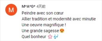 法語(yǔ)網(wǎng)友M*A*G*:“用心作畫,將傳統(tǒng)與現(xiàn)代結(jié)合,華麗的作品,偉大的智慧,這是多么幸福的一件事??!”