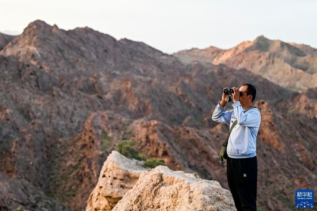 8月20日,董海寧徒步巡查賀蘭山沿線的明長(zhǎng)城永寧段。新華社記者 連振 攝