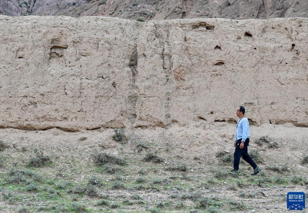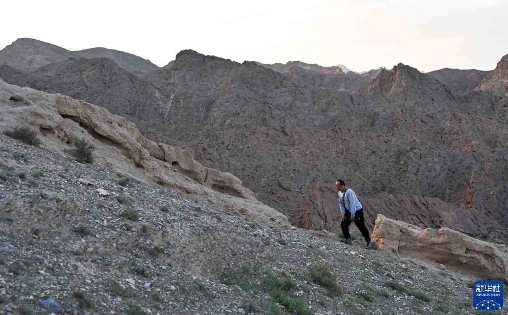 8月20日,董海寧徒步巡查賀蘭山沿線的明長(zhǎng)城永寧段。新華社記者 馮開(kāi)華 攝