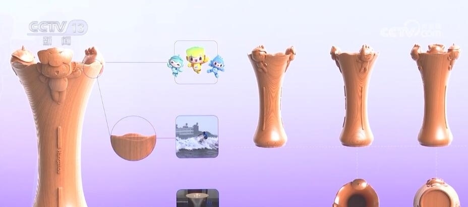 頒獎(jiǎng)托盤(pán)設(shè)計(jì)靈感則來(lái)源于微風(fēng)中波動(dòng)的西湖水面,結(jié)合本屆亞運(yùn)會(huì)核心圖形“潤(rùn)澤”中的飄逸絲帶意向,整體給人流動(dòng)之感。