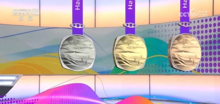 杭州亞運(yùn)會(huì)獎(jiǎng)牌名為“湖山”?!昂健睂⒘间疚幕姆叫斡耒蛨A形的獎(jiǎng)?wù)氯跒橐惑w,正面用凸出的線條勾勒出“三面云山一面城”的杭城畫(huà)卷,湖水漣漪,山巒起伏。獎(jiǎng)牌上方的束扣是一個(gè)帶有倒影的三孔橋,設(shè)計(jì)取自京杭大運(yùn)河最南端的拱宸橋。一塊獎(jiǎng)牌,將杭州的三處世界文化遺產(chǎn)——良渚、西湖、大運(yùn)河都融入其中。