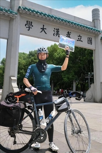 2023年是云南昆明小伙文迪與武漢大學(xué)相遇的年份,2023公里是文迪的家鄉(xiāng)到武大的距離?!斑@是我一直以來(lái)的夢(mèng)想”文迪說(shuō),在初中時(shí),他讀到大學(xué)新生騎行報(bào)到的故事,從此下定決心,未來(lái)考上大學(xué)后“考到哪里,就騎到哪里”。今年高考,文迪被武大資源與環(huán)境科學(xué)學(xué)院空間信息與國(guó)土資源專(zhuān)業(yè)錄取,從云貴高原到荊楚大地,文迪一路騎行,來(lái)了一場(chǎng)特別的新生報(bào)到之旅!8月21日,這場(chǎng)既是旅游又是“流浪”的旅途終于結(jié)束,文迪也來(lái)到了珞珈山下,即將在這座最美大學(xué)校園里開(kāi)始四年的大學(xué)生活。