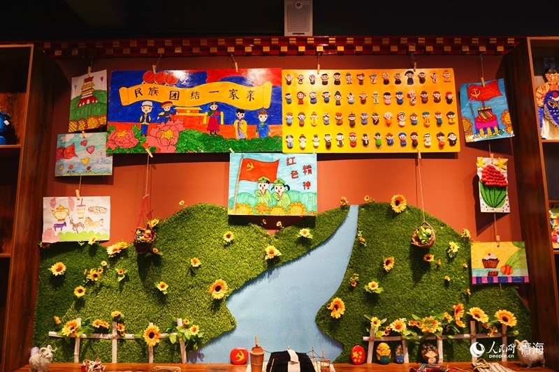 歇春園社區(qū)紅石榴之家內(nèi),社區(qū)小朋友創(chuàng)作的民族團(tuán)結(jié)主題作品引人駐足。人民網(wǎng)記者 楊啟紅攝