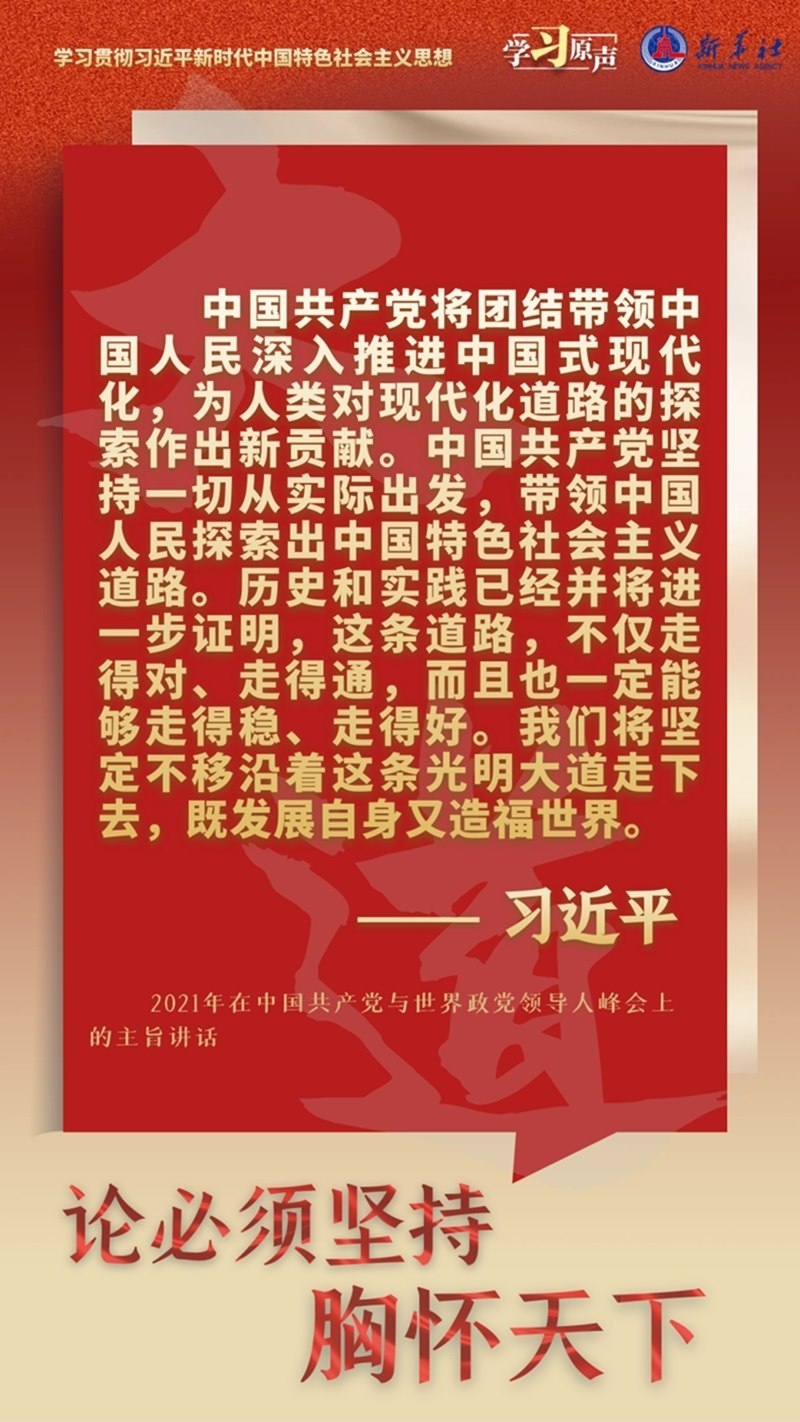 中國共產(chǎn)黨是為中國人民謀幸福、為中華民族謀復(fù)興的黨,也是為人類謀進(jìn)步、為世界謀大同的黨。我們要拓展世界眼光,深刻洞察人類發(fā)展進(jìn)步潮流,積極回應(yīng)各國人民普遍關(guān)切,為解決人類面臨的共同問題作出貢獻(xiàn),以海納百川的寬闊胸襟借鑒吸收人類一切優(yōu)秀文明成果,推動(dòng)建設(shè)更加美好的世界。