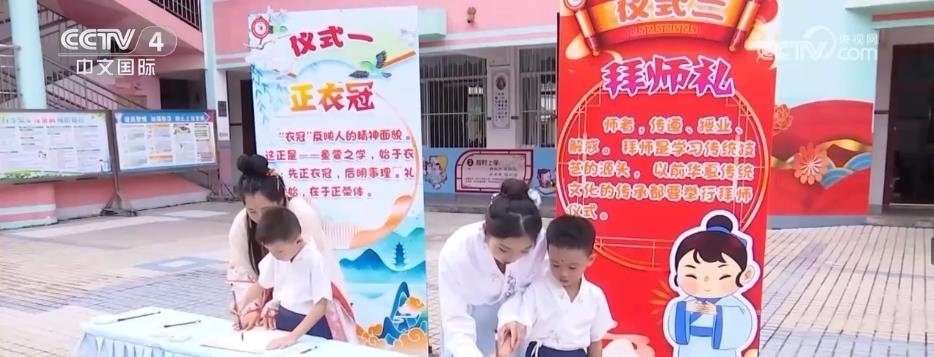 8月28日,廣西南寧市中小學(xué)校、幼兒園迎來了秋季學(xué)期。在南寧市新陽路小學(xué),300多名一年級新生參加了一場中華傳統(tǒng)入學(xué)“開筆禮”。同學(xué)們身著傳統(tǒng)服飾,依次進(jìn)行禮正衣冠、行拜師禮、朱砂點痣、擊鼓明志、開筆啟蒙等傳統(tǒng)儀式。